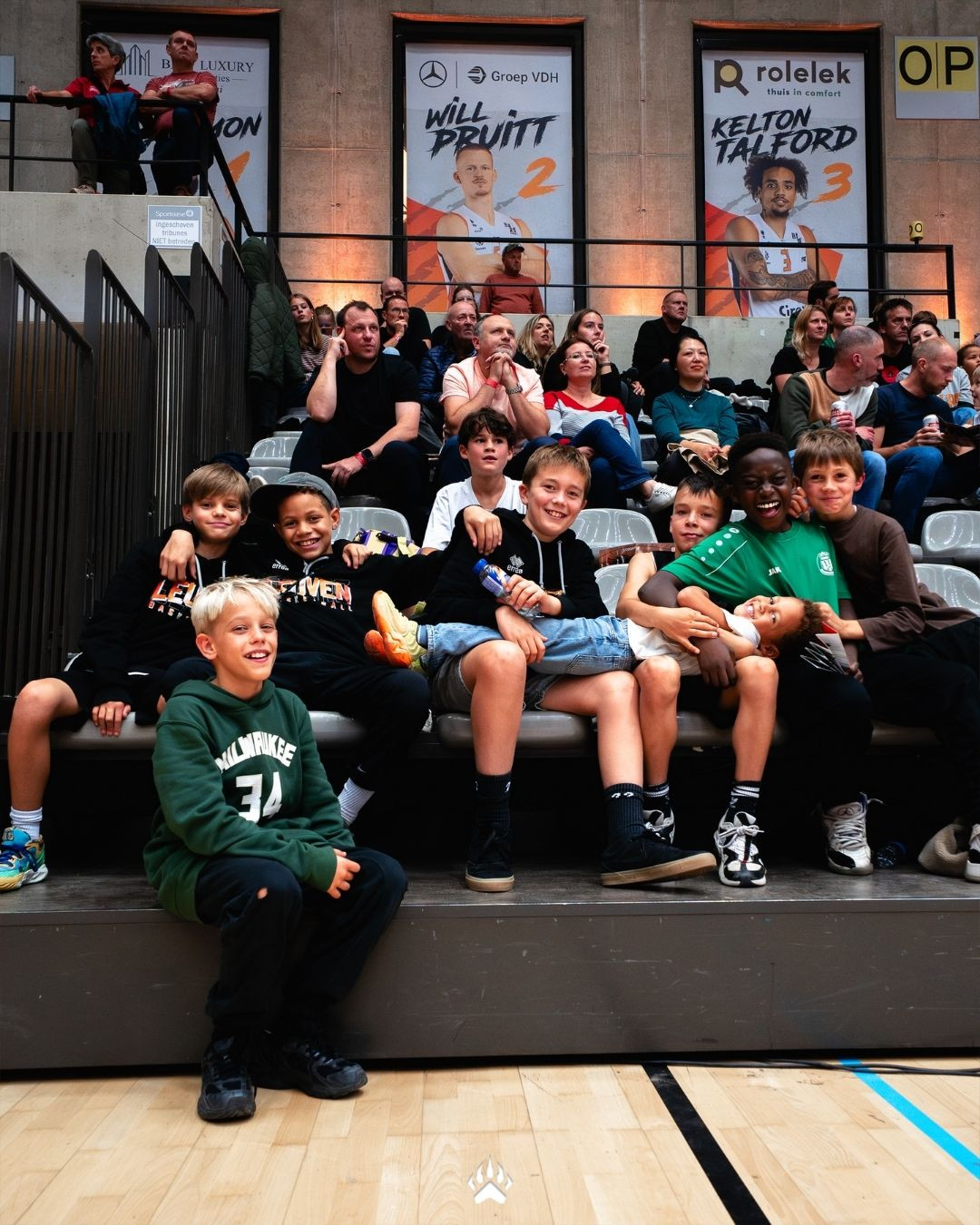 Afgelopen zaterdag waren een aantal van onze U12-spelers aanwezig bij de eerste thuiswedstrijd van het seizoen van de A-ploeg tegen Spirou Basket. Ze zorgden daar voor een flinke dosis sfeer en steun vanuit de tribunes, een mooi moment van verbondenheid tussen onze jeugd en het eerste team.